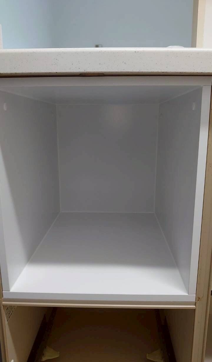 最近は食洗機を撤去した部分に箱を造作することが多いのです。