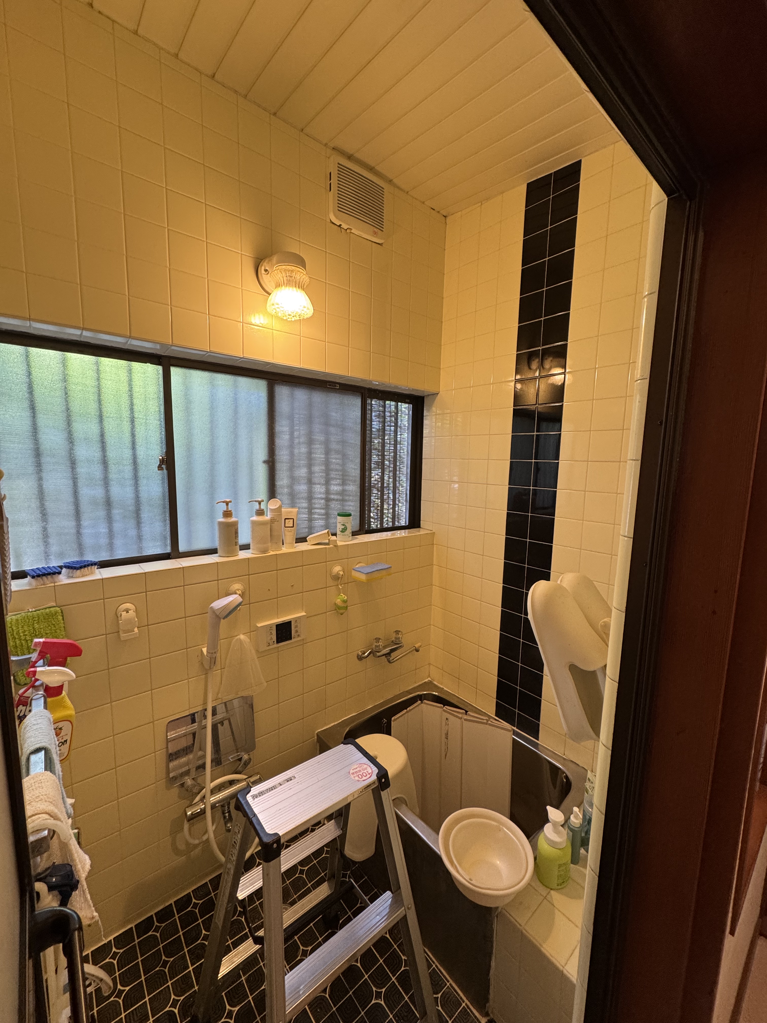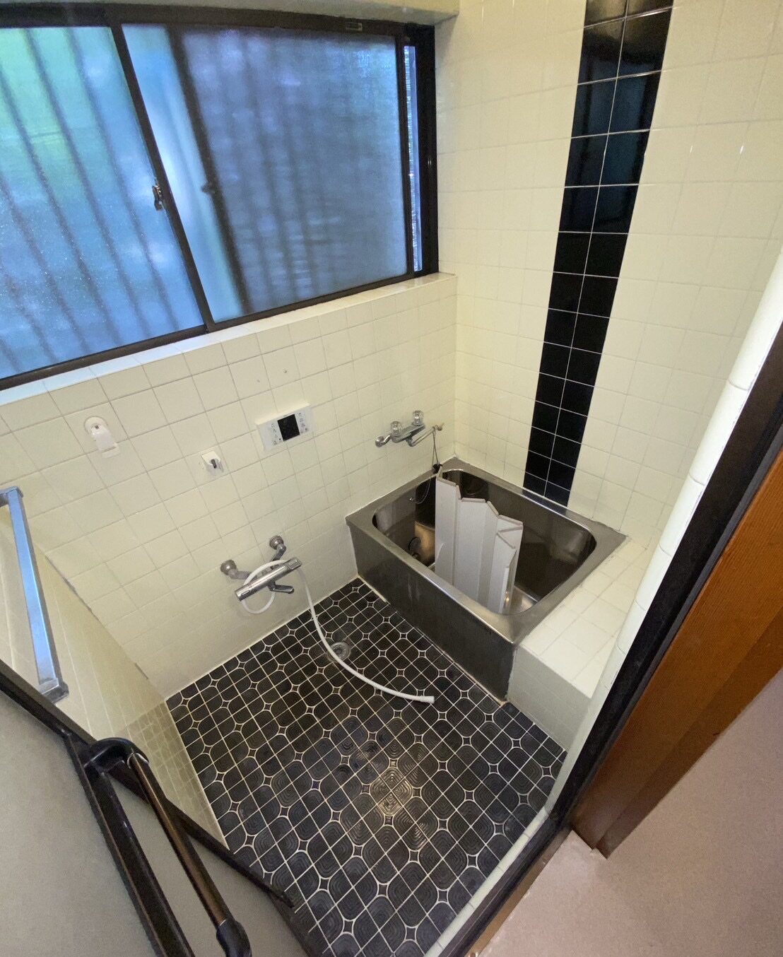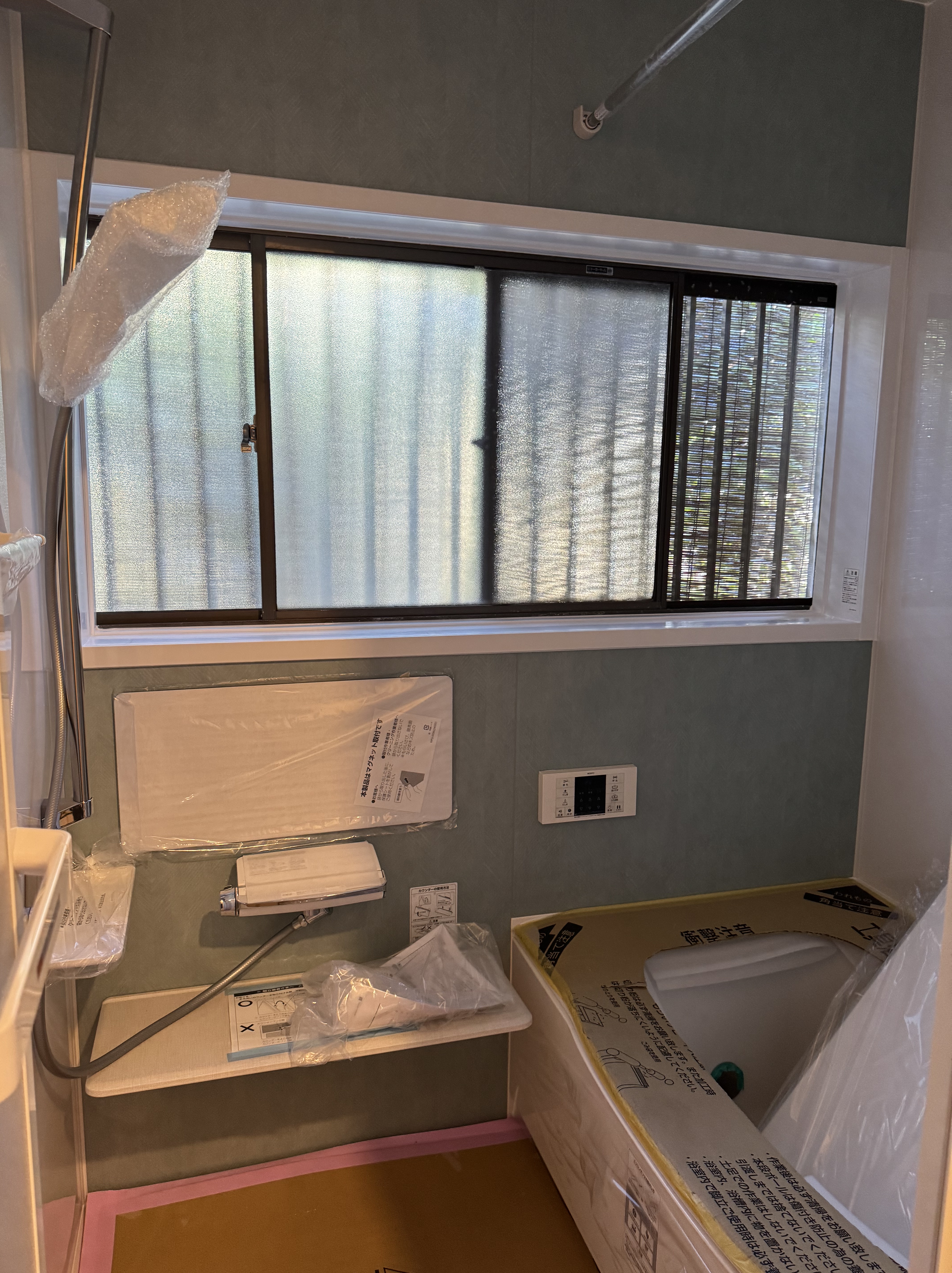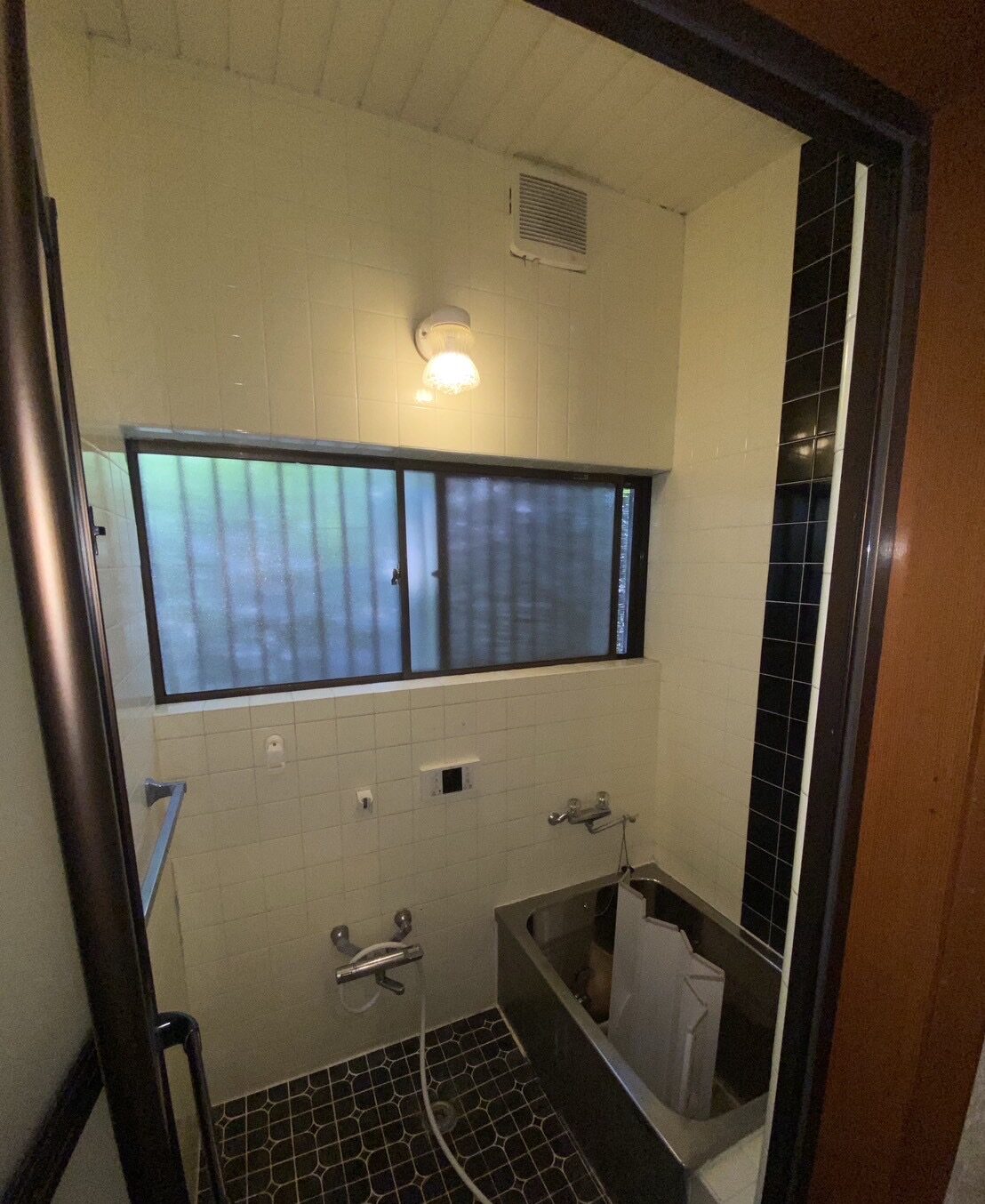 既存の浴室内には珍しくフィックス窓の付いた浴室でしたが・・