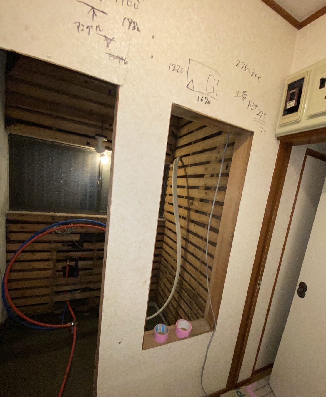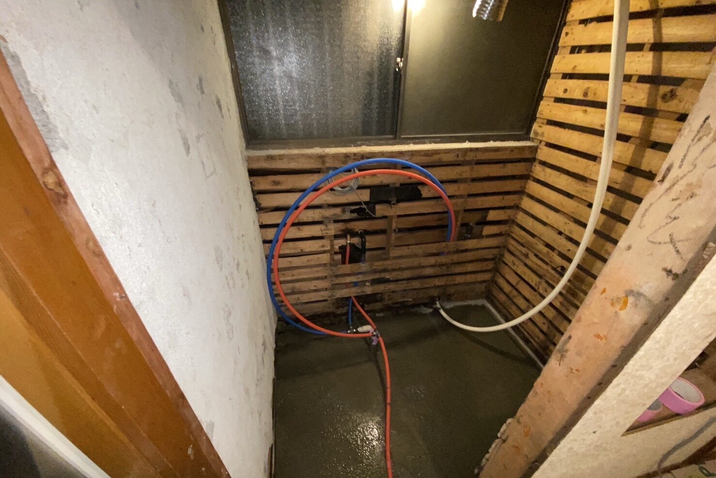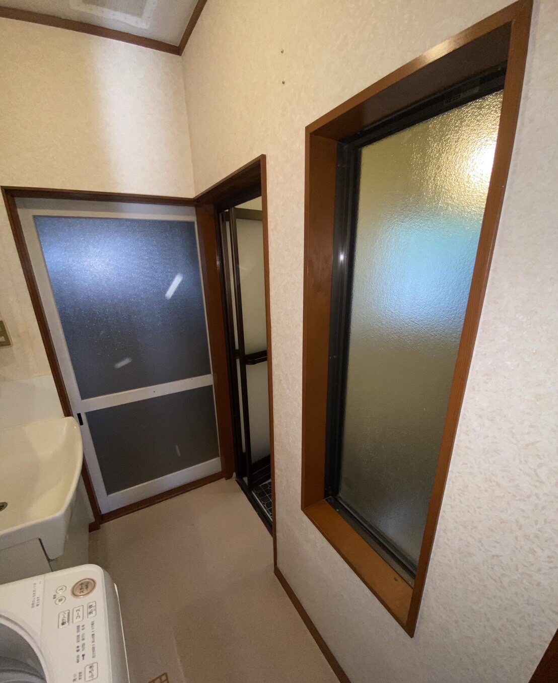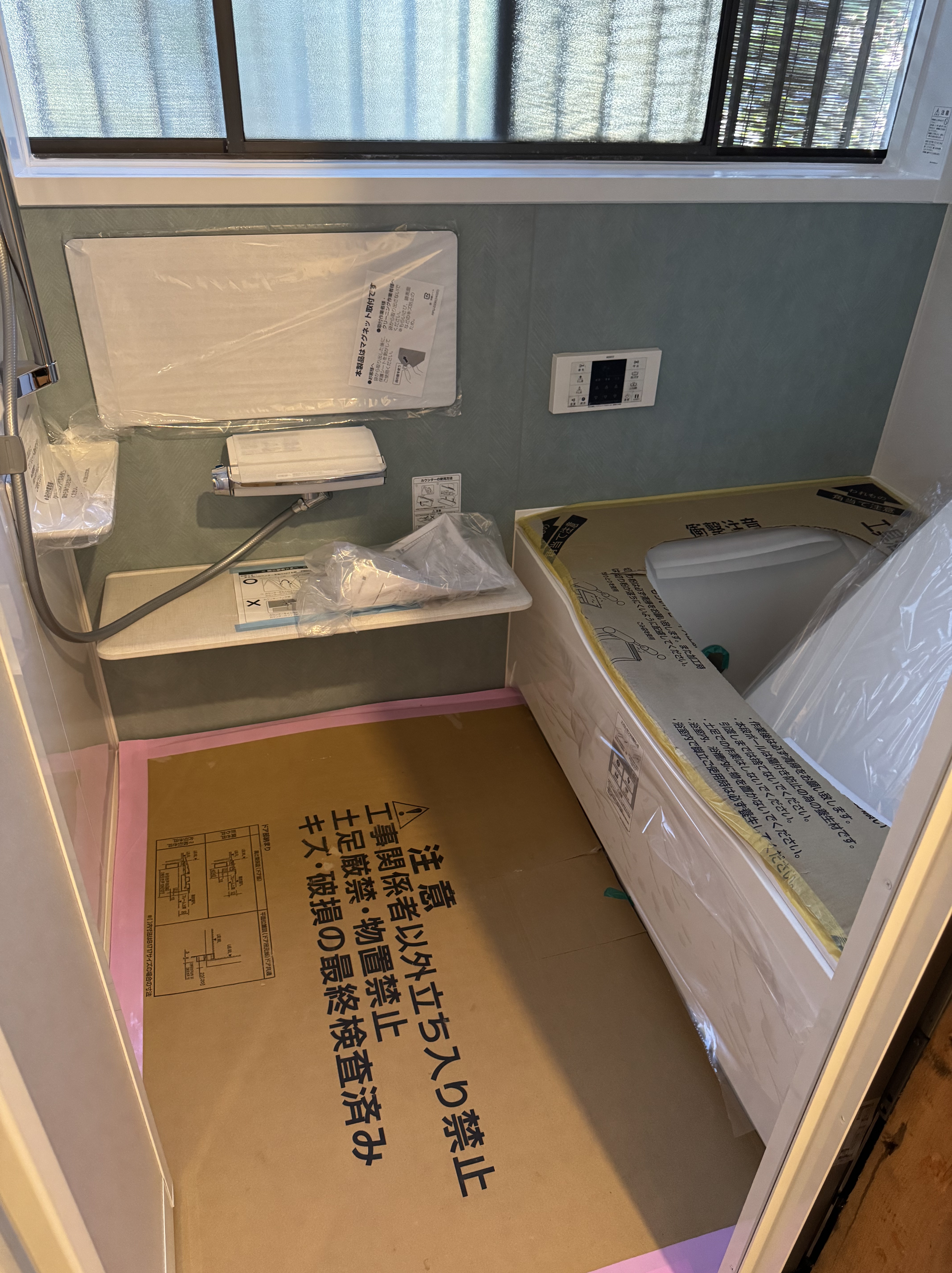 既存の浴室内には珍しくフィックス窓の付いた浴室でしたが・・