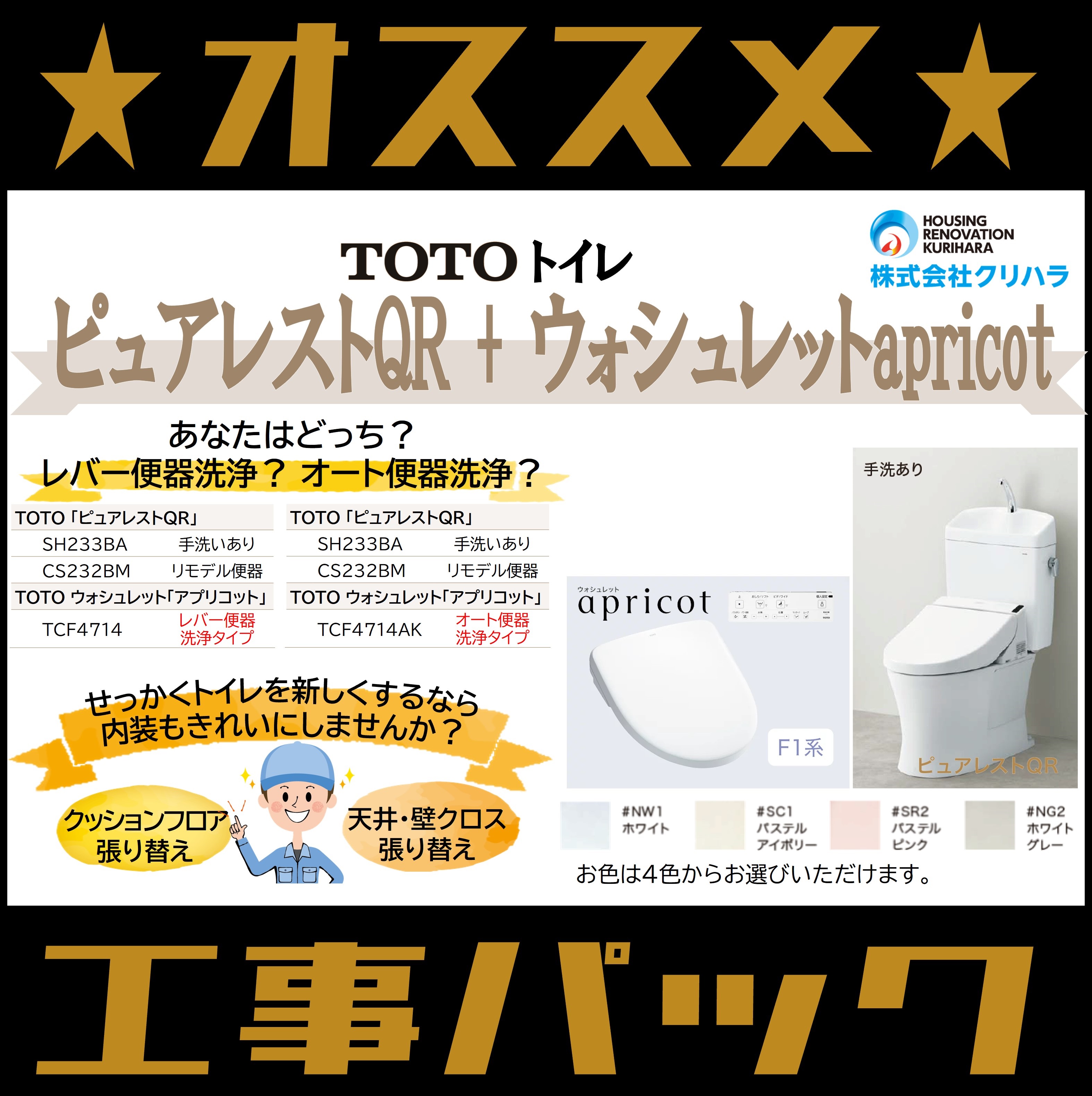 自信をもってお勧めするTOTOウォシュレット「アプリコット」と「ピュアレストQR」の工事パックが新価格で登場です!